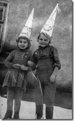 Czesław Niemen (jeżeli się nie mylę) śpiewał kiedyś „nowoczesną” kolędę „O Jezusie, Jezusie, dziura w obrusie”. Dla nas była to innowacja, i miałyśmy wielką frajdę. Ale babcia nie popierała takich durnot i zabroniła nam to śpiewać. Zeby uchronić przed gniewem omy kartkę z tekstem, Monika schowała ją do lampy na korytarzu. Haha – od tego czasu wiem, że nic się nie chowa do lamp, bo pierwszy kto ją zapali odkrywa wyrafinowaną skrytkę. Ale to był wujek… Dał Monice kartkę i radził lepiej schować, zanim oma ją dostanie w ręce.