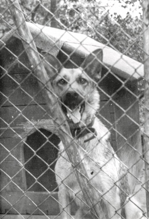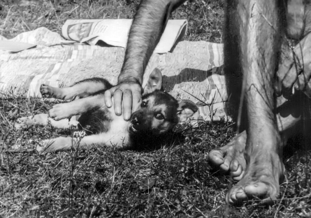 2. Poniżej naszego podwórka, koło warsztatu dziadka. W tle pociąg na torach i alejka, którą zawsze chodziliśmy do miasta „na skróty”, przez tory.